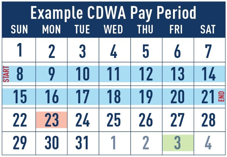 • CDWA pay periods cover a two-week time period.